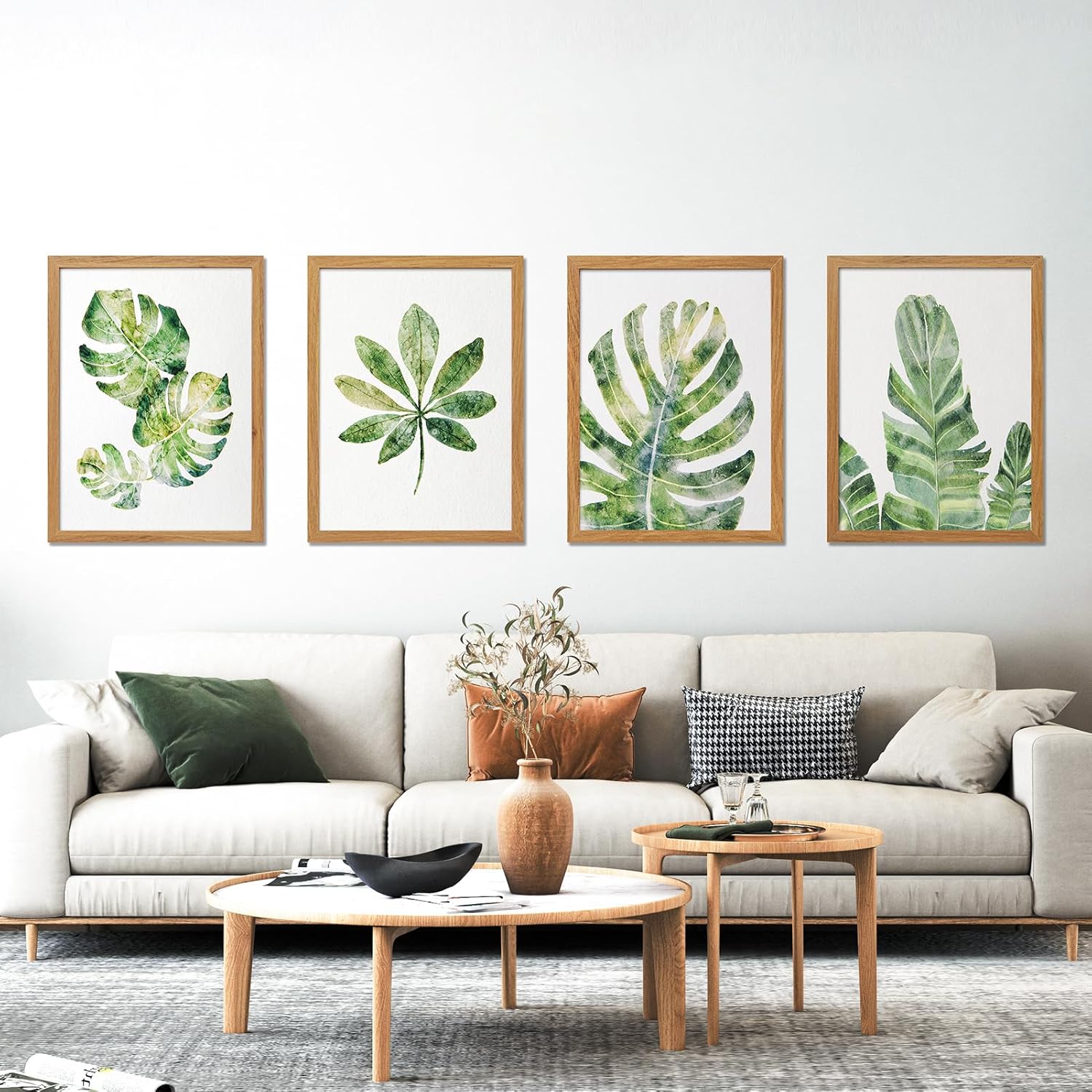 Botanical Wall Art, Framed Art for Living Room, Picture Frame, Green Modern Wall Decor with Green Plant Pictures for Bedroom, Bathroom (4 Pack, 10in x 8in)