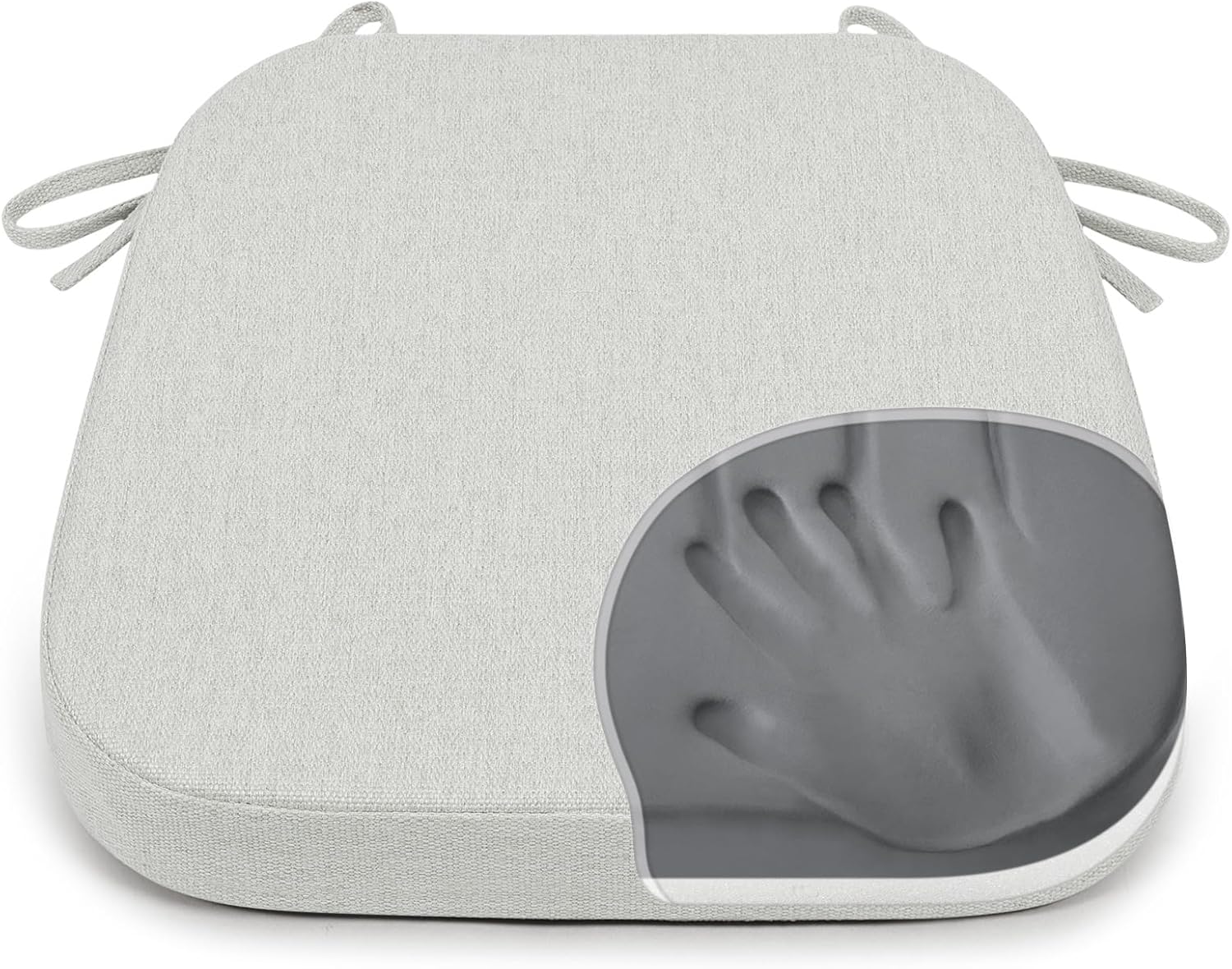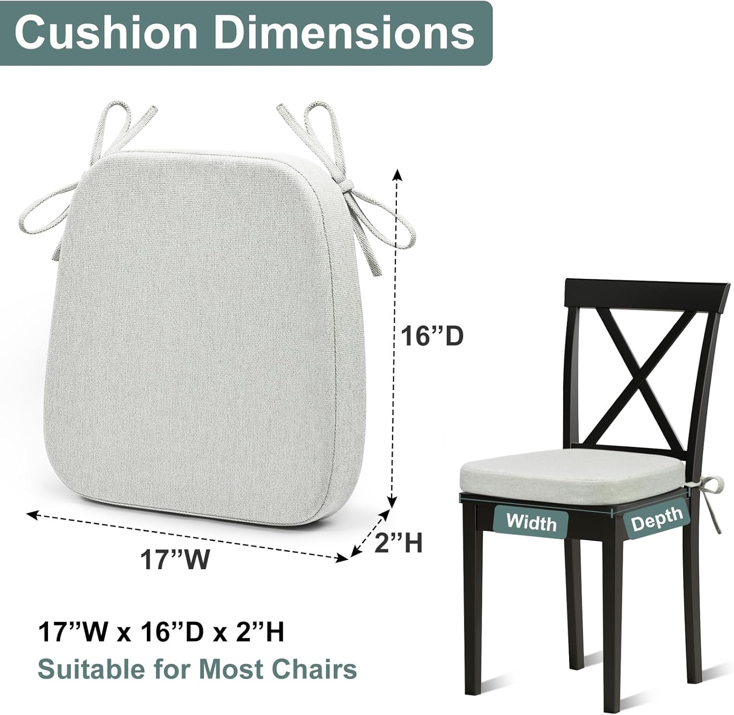 Shinnwa Dining Chair Cushions, Patented Design Molded Memory Foam Kitchen Chair Pad with Ties and Washable Cover, 17″ x 16″ x 2″, Off White