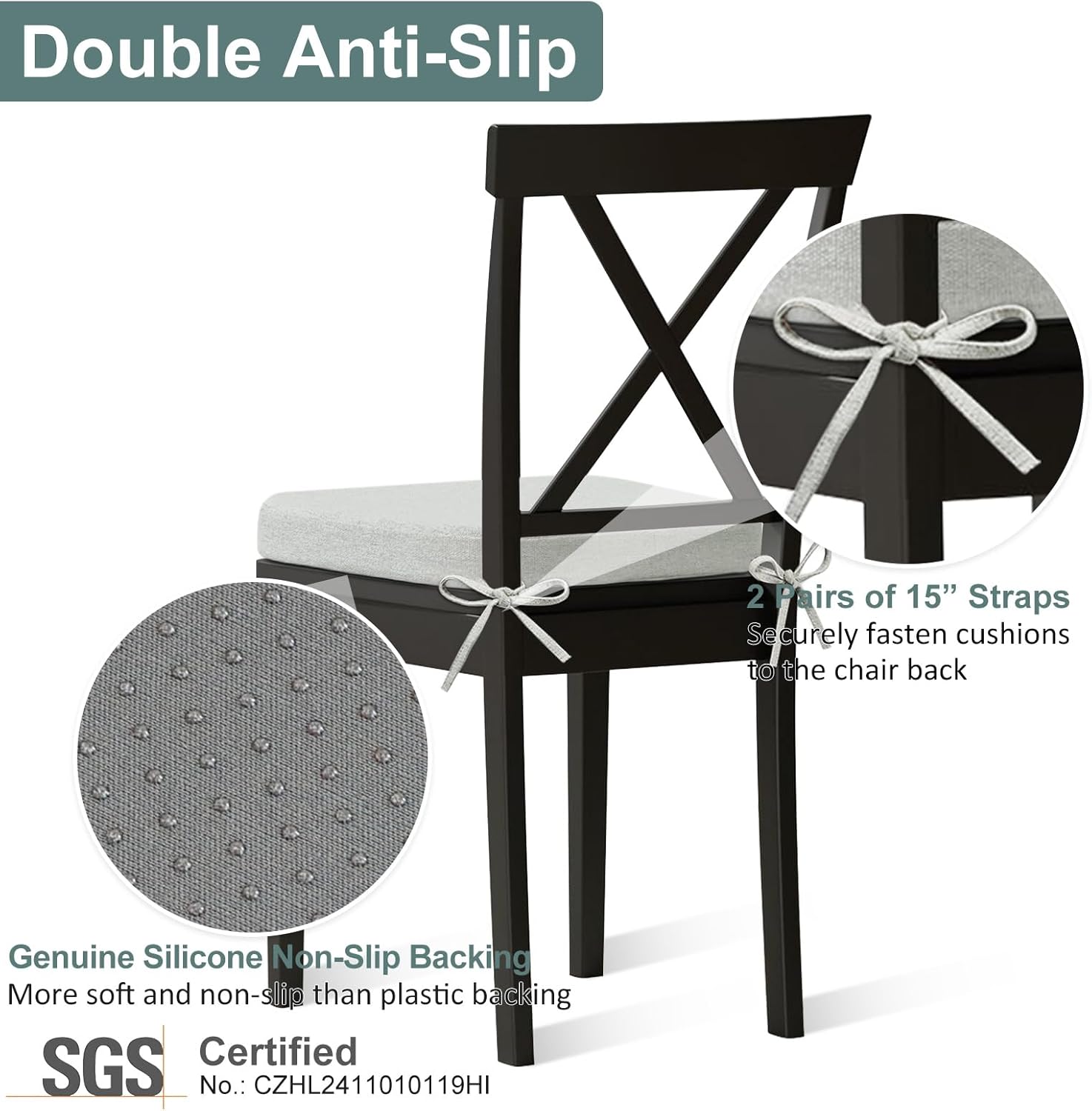 These chair cushions are designed with ties to easily secure them to your chairs, ensuring a snug fit that stays in place. The washable cover in a chic off-white color adds a touch of elegance to your seating arrangement while also being convenient to clean and maintain.