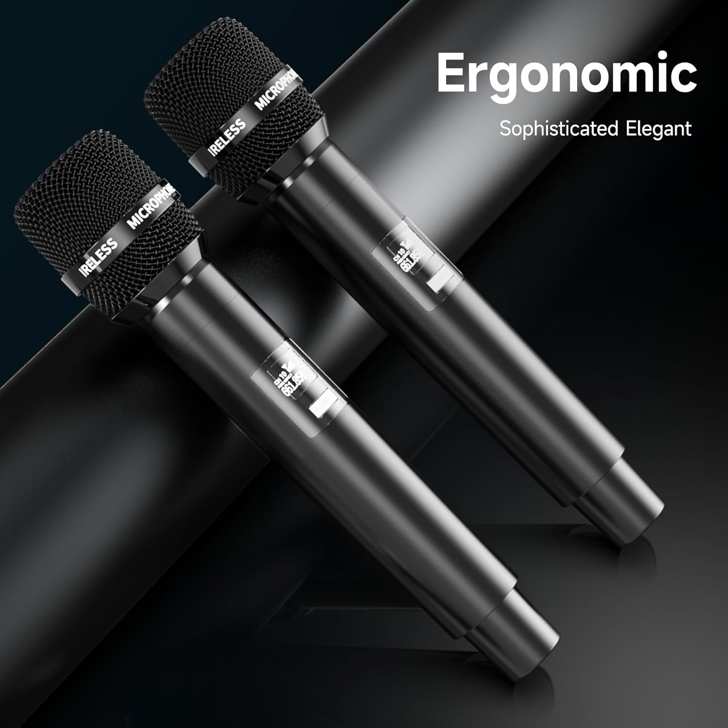 Wireless Microphones, Wireless Microphone with One-to-One Chip Connection, 40H Rechargeable Battery, 200FT Range, Plug and Play, Ergonomic Design,Less Latency Microphone for Singing, Speech, Party
