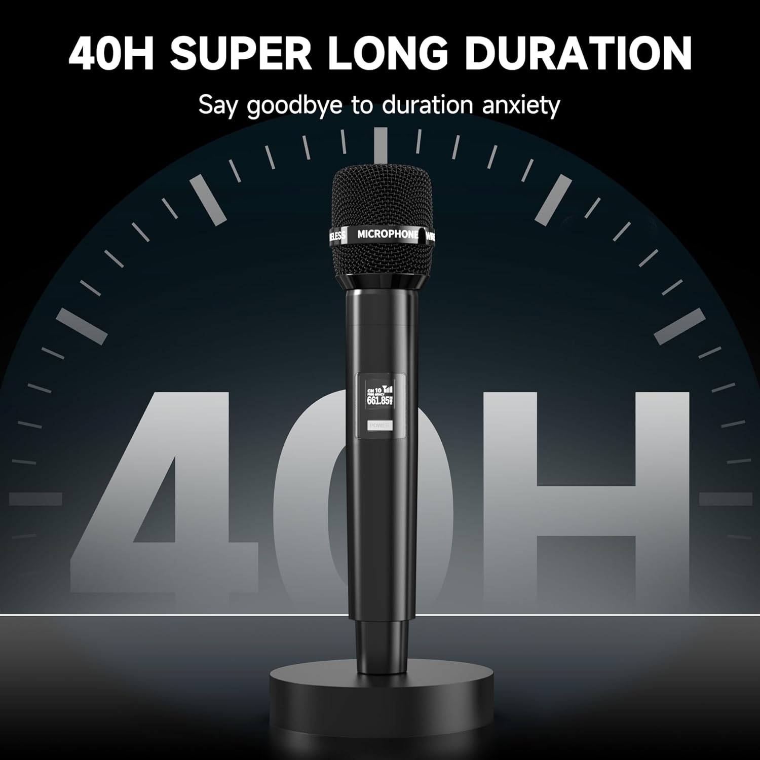 Equipped with a powerful 40-hour rechargeable battery, this wireless microphone provides uninterrupted performance for extended periods, making it perfect for long events, performances, and presentations. With an impressive range of 200 feet, you can move freely and perform with confidence without worrying about signal dropouts.