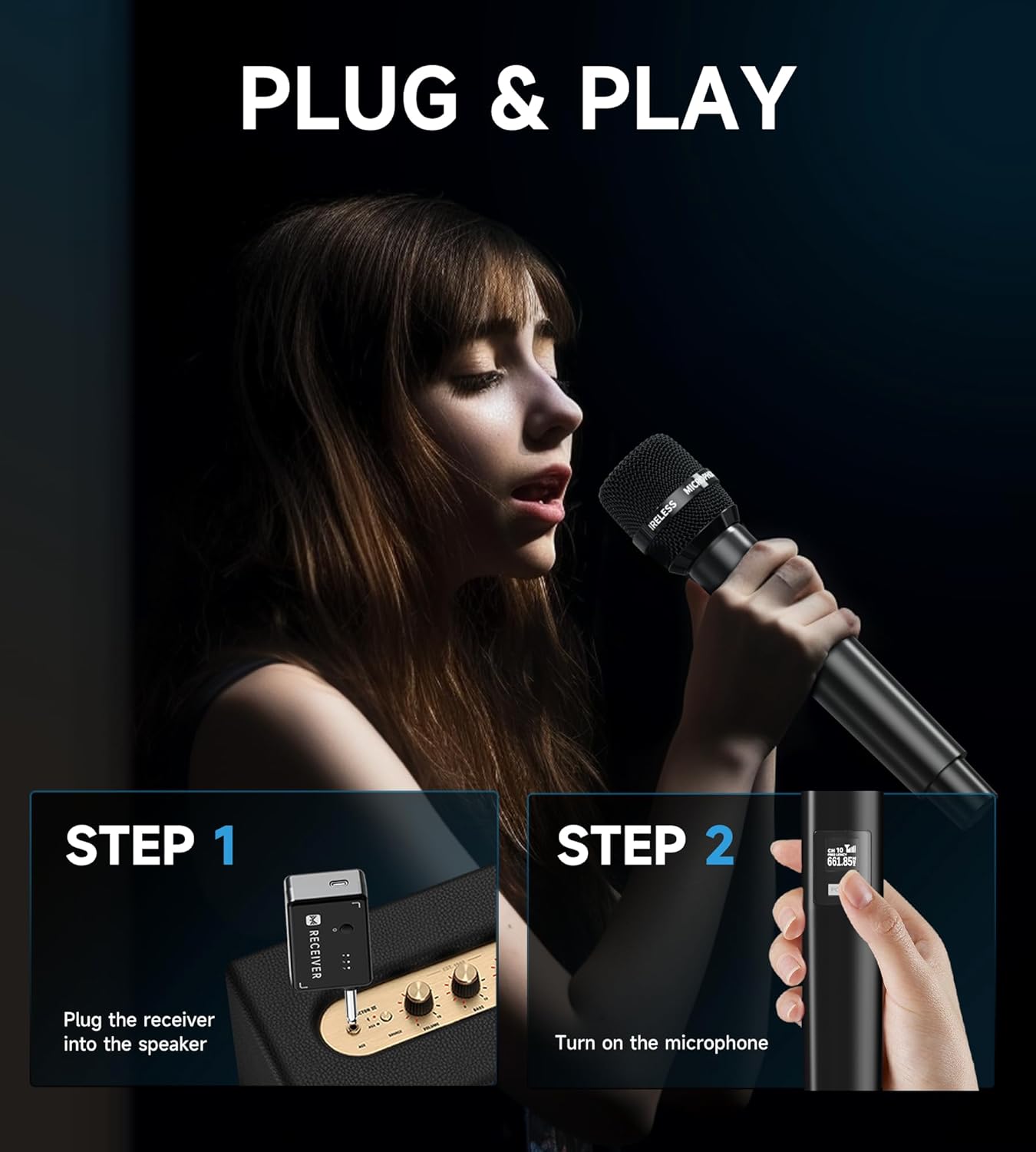 Designed for convenience and ease of use, this wireless microphone features a plug-and-play functionality, allowing you to set it up quickly and start using it right away. The ergonomic design ensures a comfortable grip and easy handling, making it suitable for singers, speakers, and party hosts alike.